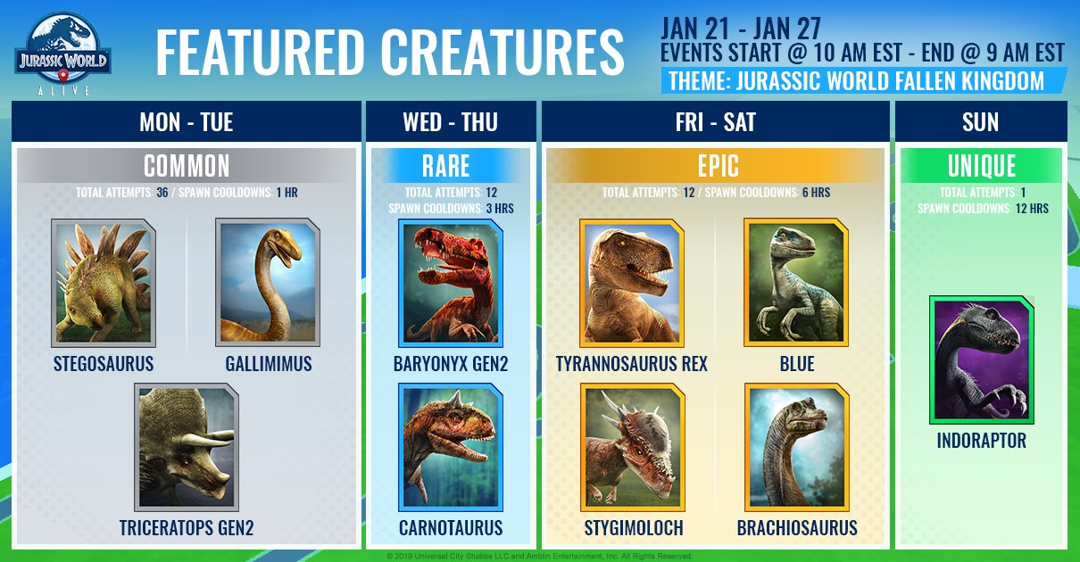 ジュラシックワールドアライブ 1/22-1/28 のスポットライトドロップに出現する恐竜