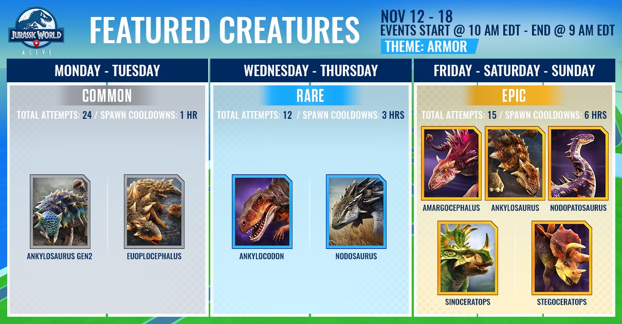 ジュラシックワールドアライブ 11/06-11/12 のスポットライトドロップに出現する恐竜